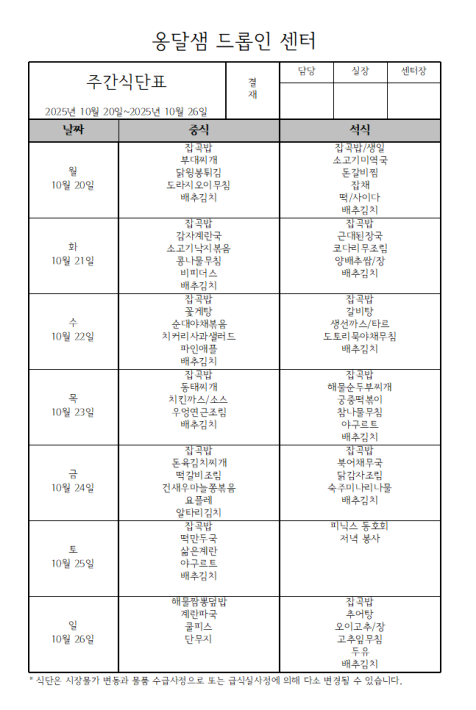 ¿Ë´Þ»ùµå·ÓÀμ¾ÅÍ 2025³â 11¿ù 1ÁÖÂ÷ ½Ä´ÜÇ¥
