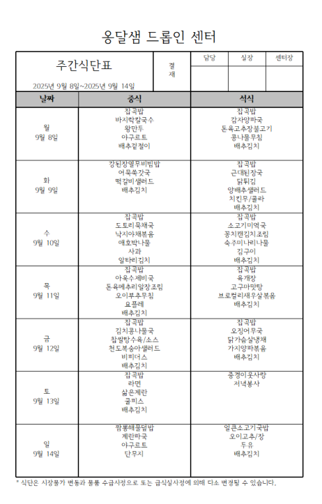 ¿Ë´Þ»ùµå·ÓÀμ¾ÅÍ 2025³â 9¿ù 2ÁÖÂ÷ ½Ä´ÜÇ¥
